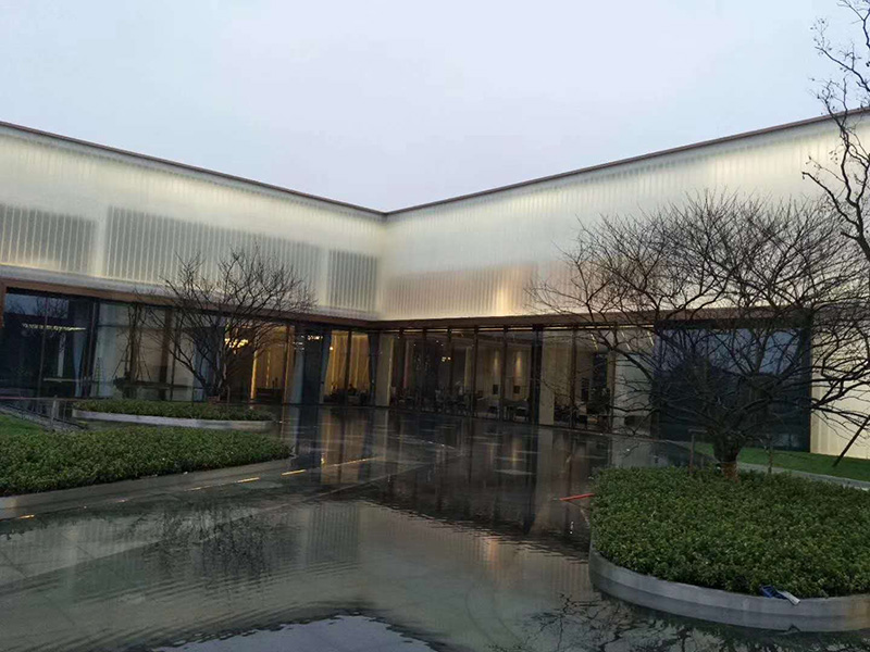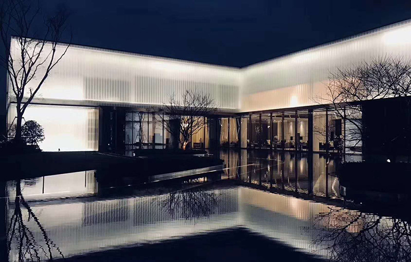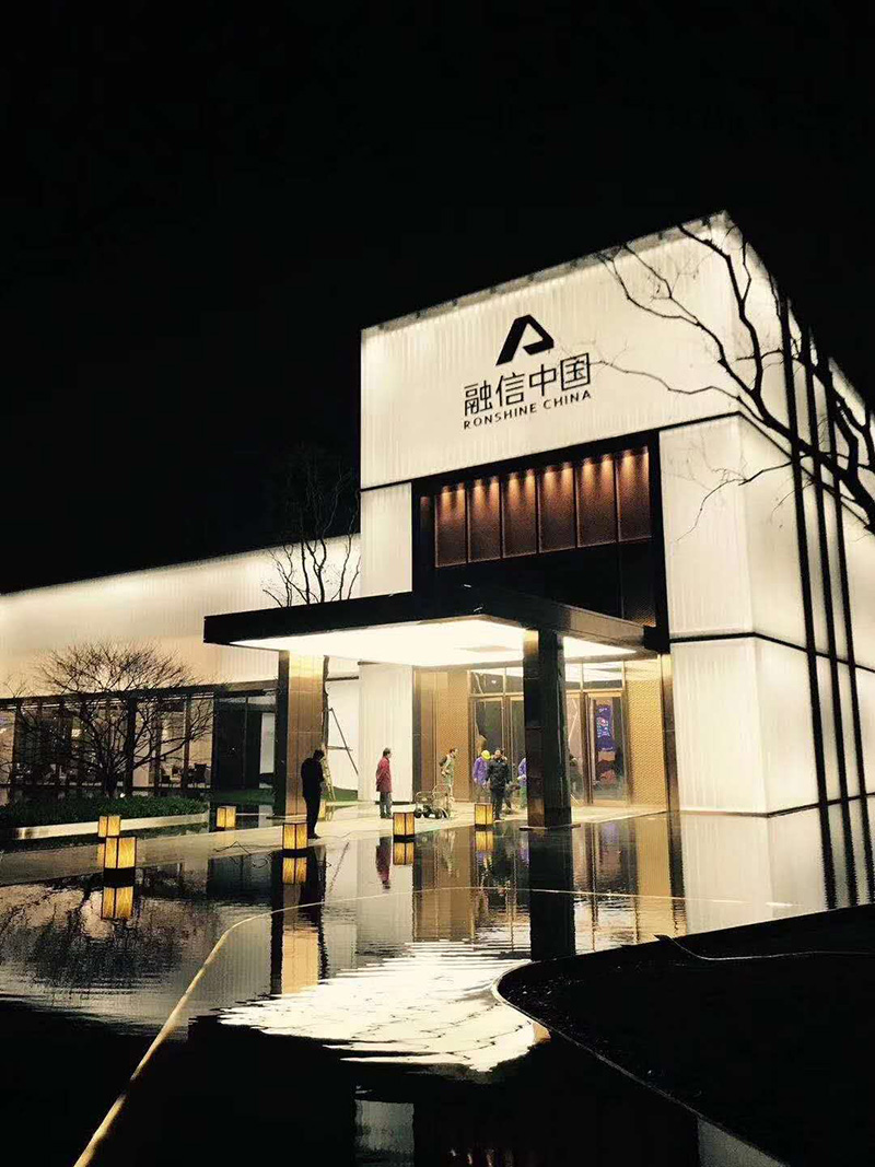 ——祥捷牌超白鋼化蒙砂U型玻璃應(yīng)用于融信紹興嵊州售樓部